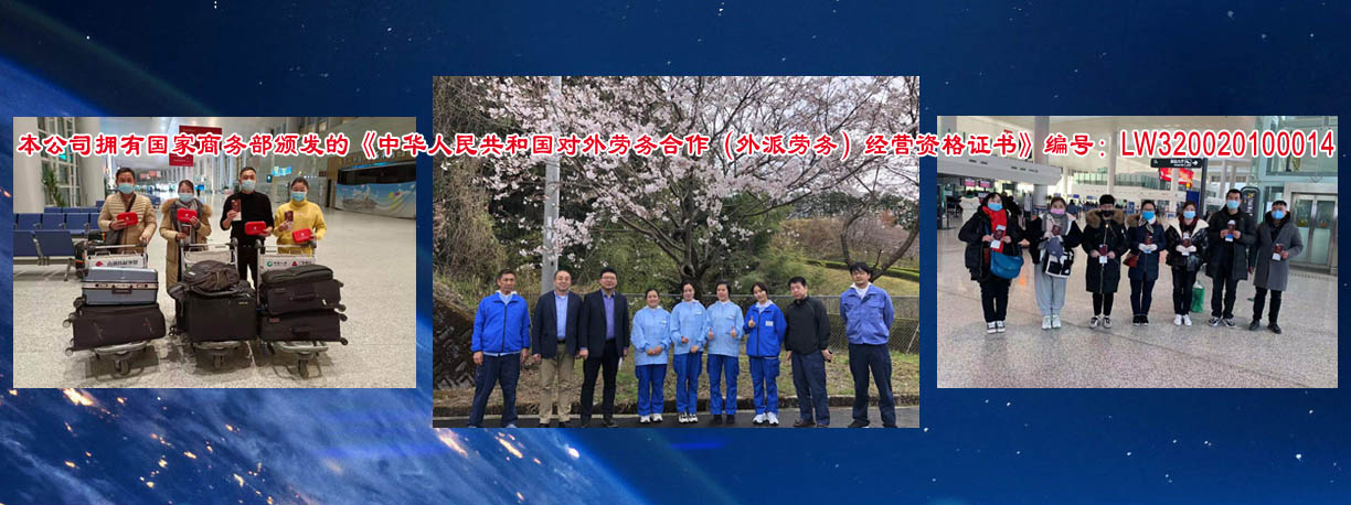 是從事對外勞務合作的專業(yè)性公司,本公司擁有國家商務部頒發(fā)的《中華人民共和國對外勞務合作(外派勞務)經營資格證書》編號:LW320020100014。從一九九五年開展勞務合作以來,積極開拓進取,先后向日本、加拿大、新加坡、韓國等國家派遣勞務人員近1萬5千余人。勞務合作行業(yè)主要有服裝(車工、裁剪、整燙、制板、維修、車間管理)、針織業(yè)(織布、漂染、針織、橫機、套口羊毛衫工)、建筑工程(技術人員、瓦工、鋼筋工、拌灰工、木工、油漆工、電工、鋁合金工、水暖工等)、機械工(銑床、車床、沖床、鉆床、鑄造等)電焊工(壓力容器、亞弧焊、建筑設備安裝、船舶、管道工)、遠洋捕撈(職務船員、普通漁工、水手),高級廚師(川菜、粵菜、京菜、淮揚菜)、電子裝配、園藝、蔬菜種植、桑蠶飼養(yǎng)、海、淡水養(yǎng)殖、護士、翻譯(英語、日語、韓國)等,日本辦事處設在日本東京、廣島主要負責管理和服務日本研修生及貿易方面的聯絡工作,國外辦事處和中國公司現有工作人員25人,專職勞務工作人員10人,從事勞務行業(yè)均10年以上,翻譯、培訓教師5人,外教2人,會計3人,業(yè)務人員5人。
